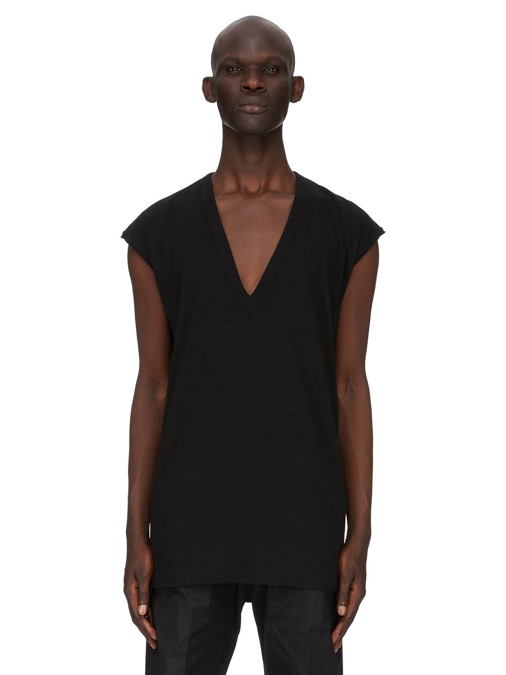 RICK OWENS FW25 CONCORDIANS DEEP V SL T IN BLACK RAININO JERSEY THIS DEEP V SL T IS HIP LENGTH, IT HAS A DEEP V NECK WITH WIDE TANK SHOULDERS WITH REINFORCED RAW CUT ARMS. IT FEATURES THE SIGNATURE SINGLE SEAM RUNNING DOWN THE CENTRE BACK SPINE THIS MEDIUMWEIGHT AND FLUID VISCOSE AND WOOL BLEND JERSEY HAS A SOFT, WARM HANDFEEL AND A SLIGHTLY HAIRY SURFACE TEXTURE WE STRIVE TO KEEP OUR PRODUCTION AS LOCAL AS POSSIBLE. THE FULL MANUFACTURING CYCLE OF THIS PRODUCT, FROM THE MATERIAL KNITTING TO SEWING AND FINISHING, WAS UNDERTAKEN CLOSE TO OUR HOME BASE IN CONCORDIA, ITALY THIS JERSEY IS MADE FROM FSC® CERTIFIED VISCOSE AND RWS CERTIFIED WOOL COLOR: BLACK MATERIAL: 30% VISCOSE + 30% NYLON + 20% ANGORA + 20% WOOL MODEL IS 189CM TALL MODEL WEARS SIZE S
