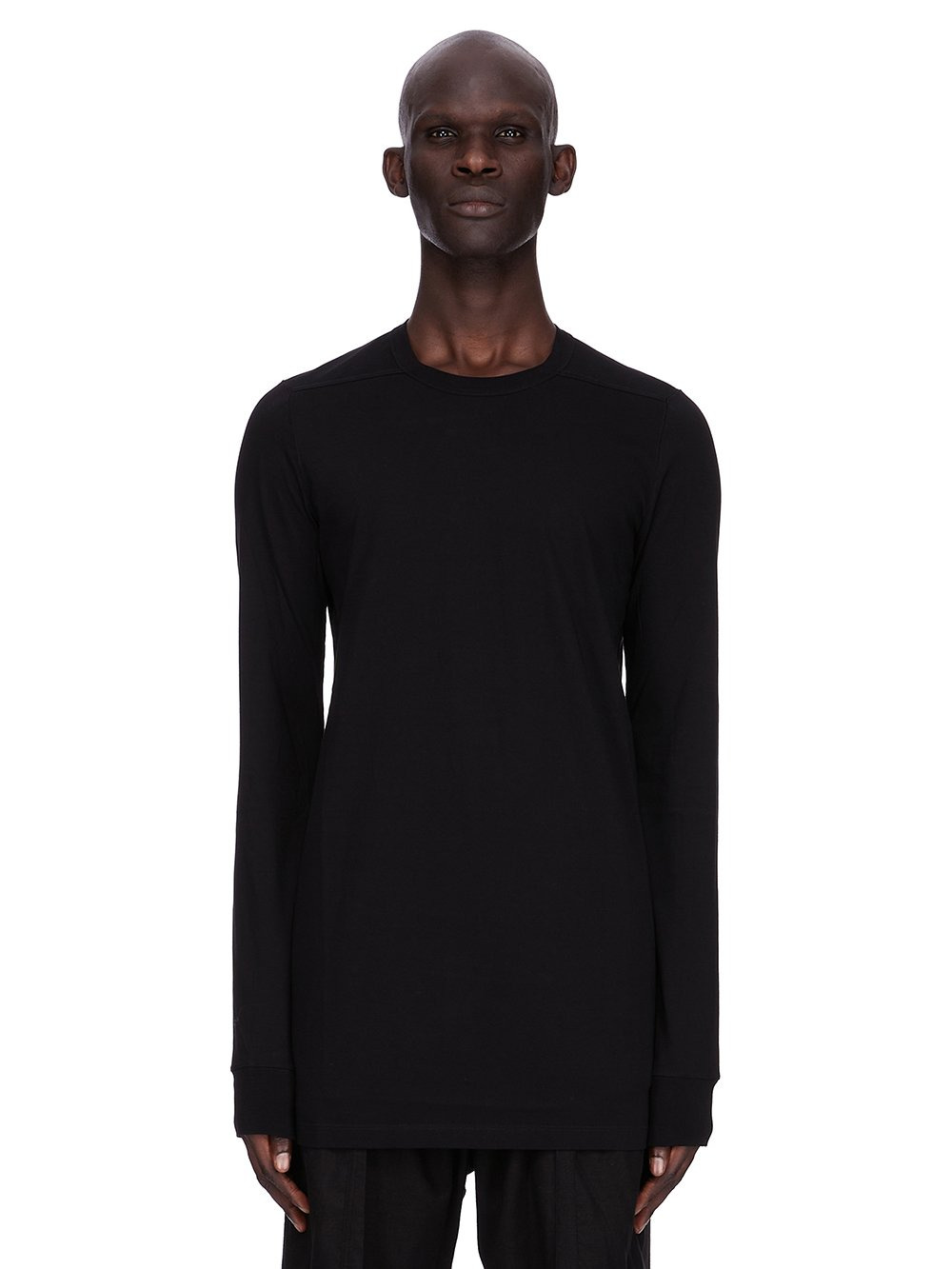 RICK OWENS FW25 CONCORDIANS LEVEL LS T IN BLACK CLASSIC COTTON JERSEY THIS LEVEL LS T IS BELOW HIP LENGTH WITH LONG SLEEVES. IT HAS A RIBBED ROUND NECK AND CUFFS. IT FEATURES THE SIGNATURE LEVEL SHOULDER SEAMS AND SINGLE SEAM RUNNING DOWN THE CENTRE BACK SPINE THIS MEDIUMWEIGHT CLASSIC COTTON JERSEY IS COMPACT WITH A DRY HANDFEEL THIS JERSEY IS MADE USING GOTS CERTIFIED ORGANIC COTTON WHICH MEANS THE NATURAL FIBER IS GROWN WITHOUT HARMFUL CHEMICALS, LEAVING OUR SOIL, AIR AND WATER CLEANER FROM CONTAMINATES WE STRIVE TO KEEP OUR PRODUCTION AS LOCAL AS POSSIBLE. THE FULL MANUFACTURING CYCLE OF THIS PRODUCT, FROM THE MATERIAL KNITTING TO SEWING AND FINISHING, WAS UNDERTAKEN CLOSE TO OUR HOME BASE IN CONCORDIA, ITALY COLOR: BLACK MATERIAL: 100% COTTON MODEL IS 189CM TALL MODEL WEARS SIZE S