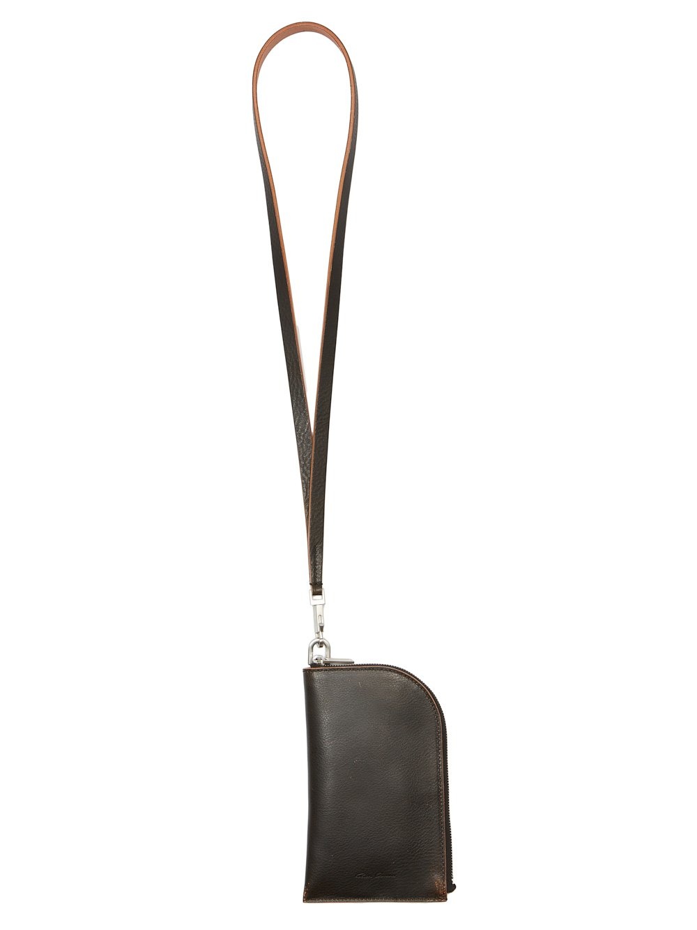 RICK OWENS FW25 CONCORDIANS NECKWALLET IN BLACK GROPPONE COW LEATHER THIS NECK WALLET IS RECTANGULAR IN SHAPE WITH ONE ROUNDED CORNER AND A ZIPPER CLOSURE. IT HAS A D-RING, A DETACHABLE NECK STRAP WITH A SMALL PALLADIUM TONE BRASS HOOK THIS HEAVYWEIGHT COW LEATHER IS VEG TANNED AND FINISHED USING NATURAL WAXES. BECAUSE THIS SKIN IS NAKED, NOT FINISHED USING ANY PIGMENTS COVERING THE SKIN, NATURAL MARKINGS AND SHADINGS ARE VISIBLE WHICH MAKES EACH SKIN AND PRODUCT UNIQUE VEG TANNING MEANS ONLY VEGETAL AND NATURAL TANNINS WERE USED IN THE PROCESS OF TANNING AND PRESERVING THIS LEATHER THIS TANNERY IS LWG CERTIFIED WITH A GOLD RATING COLOR: BLACK MATERIAL: 100% COW LEATHER SHOULDER STRAP 100% BULL LEATHER IT MEASURES 11CM X 18CM X 1CM
