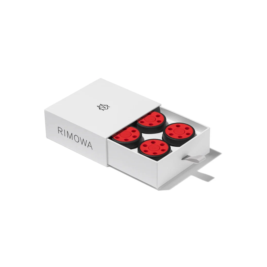 Show off your shade with this set of 4 wheels designed for the Classic Collection. Pioneered by RIMOWA, the Multiwheel® System guarantees stable and effortless steering thanks to ball-bearing mounted wheels with cushioned axels. Choose from a selection of colours that match the customisable details of the RIMOWA Classic Collection.