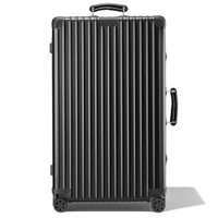 Designed for the most discerning travelers, the RIMOWA Classic Trunk in matte black effortlessly combines luxury with functionality. Rooted in heritage, each RIMOWA Classic features a high-end anodized aluminum alloy, riveted matte black aluminum corners, and hand-made leather handles. Creating the perfect balance between craftsmanship and superior engineering, this large 4 wheel aluminum suitcase provides enough room for journeys of up to 14 days. Designed and engineered in Germany. Includes a complimentary leather luggage tag and sticker set. Key elements TSA-Approved Locks Each of our suitcases features TSA-approved locks that can be opened by security during airline baggage checks without causing any damage. Flex Divider Packed items are kept in perfect order during transit with the height adjustable Flex Divider, which can be adapted to suit your belongings. Multiwheel® System Pioneered by RIMOWA, this high-end system guarantees stable and effortless steering thanks to ball-bearing mounted wheels with cushioned axels. Telescopic Handle Engineered to offer a stageless handle for custom height adjustment and an ergonomic grip with a leather insert on the underside for optimum comfort. Size and Weight Measurement 29,5 x 14,2 x 18,5 INCH Weight 13,2 Lbs Volume 26,4 Gal Materials Outside : Aluminium Inside : Polyester Handles : Leather Wheels: Hard plastic Dividers: Polyester