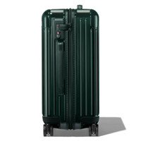 The world’s first ever polycarbonate suitcase, designed in Germany to provide the best in high-tech functionality. This strong, durable, and lightweight carry-on suitcase is designed to fit in most airline overhead bins and the ideal travel tool for purposeful travelers. Perfect for 2-3 days of travel, the RIMOWA Essential Cabin in green with a glossy finish is the ultimate in hard shell luggage innovation. Includes a complimentary leather luggage tag and a sticker. Video : The model is 175cm-5'7". Key elements TSA-Approved Locks Each of our suitcases features TSA-approved locks that can be opened by security during airline baggage checks without causing any damage. Dual interior organization The interior features a fully zipped compartment with a large mesh zipped pocket for additional storage and a height adjustable Flex Divider - RIMOWA’s patented compression system - to keep items in perfect order during transport. Multiwheel® System Pioneered by RIMOWA, this high-end system guarantees stable and effortless steering thanks to ball-bearing mounted wheels with cushioned axles. Telescopic Handle Engineered to offer seamless stage-free adjustment for maximum comfort and smooth manoeuvrability. Size and Weight Measurement 21,7 x 15,8 x 9,1 inch Weight 7,1 Lbs Volume 9,8 Gal Materials Outside: Polycarbonate Inside: Polyjacquard Zippers: KK Metal Handles: Plastic Wheels: Polycarbonate Dividers: Polyjacquard