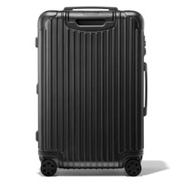 Made of high-performance polycarbonate, RIMOWA Essential is a reliable and lightweight suitcase for your journeys ahead. Find the best travel companion wether you are travelling for business or leisure, amongst a vast range of colors and finishes. Ideal for 1 week of travel, the RIMOWA Essential Check-in M in matte black features a number of ingenious functionalities: - Stage-free telescopic handle - RIMOWA Multiwheel® System - TSA-approved locks - Dual-organization interior Includes a complimentary leather luggage tag and a sticker. Designed in Germany. Produced in our RIMOWA factories. Video : The model is 189cm-6'2". Key elements TSA-Approved Locks Each of our suitcases features TSA-approved locks that can be opened by security during airline baggage checks without causing any damage. Dual-organization Interior The interior features a fully zipped compartment with a large mesh zipped pocket for additional storage and a height-adjustable Flex Divider - RIMOWA’s patented compression system - to keep items in perfect order during transport. Multiwheel® System Pioneered by RIMOWA, this high-end system guarantees stable and effortless steering thanks to ball-bearing mounted wheels with cushioned axles. Telescopic Handle Engineered to offer seamless stage-free adjustment for maximum comfort and smooth manoeuvrability. Size and Weight Measurement 26.4 x 17.8 x 9.5 inch Weight 9 lbs Volume 15.4 gal