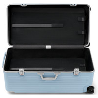 Designed for the discerning traveler, the Hybrid collection is renowned for its perfect blend of RIMOWA’s most advanced materials. The collection offers optimal functionality, with the polycarbonate shell making for a lightweight traveling experience while the robust aluminum corners and frame offer strength and security. Ideal for 2 weeks or more of travel, the RIMOWA Hybrid Trunk Plus suitcase in gloss Sky blue features several sophisticated functionalities: - Stage-Free Telescopic Handle - RIMOWA Multiwheel® System - TSA-Approved Latch Locks - Two Flex Dividers Includes a complimentary leather luggage tag and a sticker. Designed in Germany. Produced in our RIMOWA factories. Key elements TSA-Approved Locks Each of our suitcases features TSA-approved locks that can be opened by security during airline baggage checks without causing any damage. Flex Divider Packed items are kept in perfect order during transit with the height adjustable Flex Divider, which can be adapted to suit your belongings. RIMOWA Multiwheel® System Pioneered by RIMOWA, this high-end system guarantees stable and effortless steering thanks to ball-bearing mounted wheels with cushioned axels. Telescopic Handle Engineered to offer seamless stage-free adjustment for maximum comfort and smooth maneuverability. Size and Weight Measurement 31.5 x 15.8 x 16.1 inch Weight 14.1 lbs Volume 26.7 gal Materials Outside : Polycarbonate Corners : Anodized Aluminum Inside : Polyester Handles : Hard-wearing Plastic Wheels : Hard-wearing Plastic Divider : Polyester & Mesh