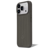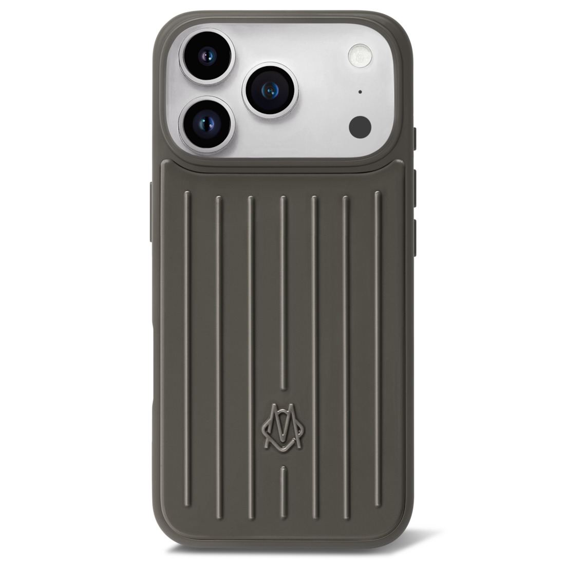 The RIMOWA Slate grey iPhone 17 Pro Max MagSafe-compatible Case in polycarbonate combines premium protection with the look of a frequent traveler. Thanks to an integrated ring of magnets that align with your iPhone 17 Pro Max, this case offers fast wireless charging on your MagSafe charging pad or your wireless charger. Made to match our signature RIMOWA suitcases, this hard-shell case is made of polycarbonate and shockproof TPU that provides good grip and comfort while protecting your phone against the scuffs and scratches that might happen while on the go. Size and Weight Measurement 6.5 x 3.2 x 0.6 inch Weight 1.8 oz Materials Exterior: Polycarbonate Interior: TPU Frame: TPU Wireless charging: Yes Contactless payment: Yes