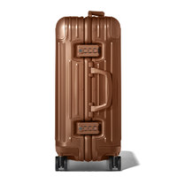 Crafted from high-end anodized aluminum, RIMOWA Original is an iconic luggage design, instantly recognizable with its sleek lines and signature grooves. Within a vast range of sizes, find your trusted and durable companion for your business and leisure travels. Ideal for 3 to 4 days of travel, the RIMOWA Original Cabin in Bronze brown features several ingenious functionalities: - Stage-free telescopic handle - RIMOWA Multiwheel® System - TSA-approved locks - Flex Divider Includes a complimentary leather luggage tag and a sticker. Designed in Germany. Produced in our RIMOWA factories. Key elements TSA-Approved Locks Each of our suitcases features TSA-approved locks that can be opened by security during airline baggage checks without causing any damage. Flex Divider Packed items are kept in perfect order during transit with the height adjustable Flex Divider, which can be adapted to suit your belongings. RIMOWA Multiwheel® System Pioneered by RIMOWA, this high-end system guarantees stable and effortless steering thanks to ball-bearing mounted wheels with cushioned axels. Telescopic Handle Engineered to offer seamless stage-free adjustment for maximum comfort and smooth maneuverability. Size and Weight Measurement 21.7 x 15.8 x 9.1 inch Weight 9.5 lbs Volume 9.2 gal Materials Outside: Aluminum Inside: Polyester Handles: Plastic Wheels: Hard plastic Dividers: Polyester