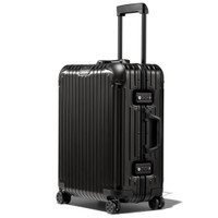 The unmistakable RIMOWA Original aluminum suitcase with its distinctive grooves is regarded as one of the most iconic luggage designs of all time. Made from high-end anodized aluminum, the RIMOWA Original Cabin Plus in black is engineered with longevity in mind. Remarkably robust and surprisingly lightweight, the timeless classic is an unparalleled example of craftsmanship and innovation. This extra spacious carry-on luggage provides just a little extra room for up to 4 days of travel. Designed and engineered in Germany. Includes a complimentary leather luggage tag and sticker set. Key elements TSA-Approved Locks Each of our suitcases features TSA-approved locks that can be opened by security during airline baggage checks without causing any damage. Flex Divider Packed items are kept in perfect order during transit with the height adjustable Flex Divider, which can be adapted to suit your belongings. Multiwheel® System Pioneered by RIMOWA, this high-end system guarantees stable and effortless steering thanks to ball-bearing mounted wheels with cushioned axels. Telescopic Handle Engineered to offer seamless stage-free adjustment for maximum comfort and smooth maneuverability. Size and Weight Measurement 22,1 x 17,8 x 9,9 INCH Weight 10,4 Lbs Volume 11,9 Gal Materials Outside: Aluminum Inside: Cotton Zippers: KK Metal Handles: Plastic Wheels: Polycarbonate Dividers: Cotton