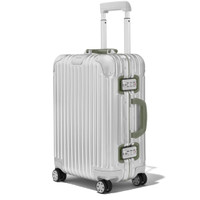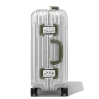 Crafted from high-end anodized aluminum, the RIMOWA Original Twist offers a distinctive look. The color accents throughout the suitcase and matching leather handles adorn RIMOWA’s iconic Original luggage design and enrich your travel experience. Ideal for 3 to 4 days of travel, the RIMOWA Original Cabin Twist in Olive green features several ingenious functionalities: - Colorful handles and luggage tag in leather - Stage-free telescopic handle - RIMOWA Multiwheel® System - TSA-approved locks - Flex Divider Includes a complimentary sticker. Designed in Germany. Produced in our RIMOWA factories. Key elements TSA-Approved Locks Each of our suitcases features TSA-approved locks that can be opened by security during airline baggage checks without causing any damage. Flex Divider Packed items are kept in perfect order during transit with the height adjustable Flex Divider, which can be adapted to suit your belongings. Multiwheel® System Pioneered by RIMOWA, this high-end system guarantees stable and effortless steering thanks to ball-bearing mounted wheels with cushioned axels. Telescopic Handle Engineered to offer seamless stage-free adjustment for maximum comfort and smooth maneuverability. Size and Weight Measurement 21.7 x 15.8 x 9.1 inch Weight 10 lbs Volume 9 gal Materials Outside : Aluminum Inside : Polyester Handles : Leather Wheels: Hard plastic Dividers: Polyester