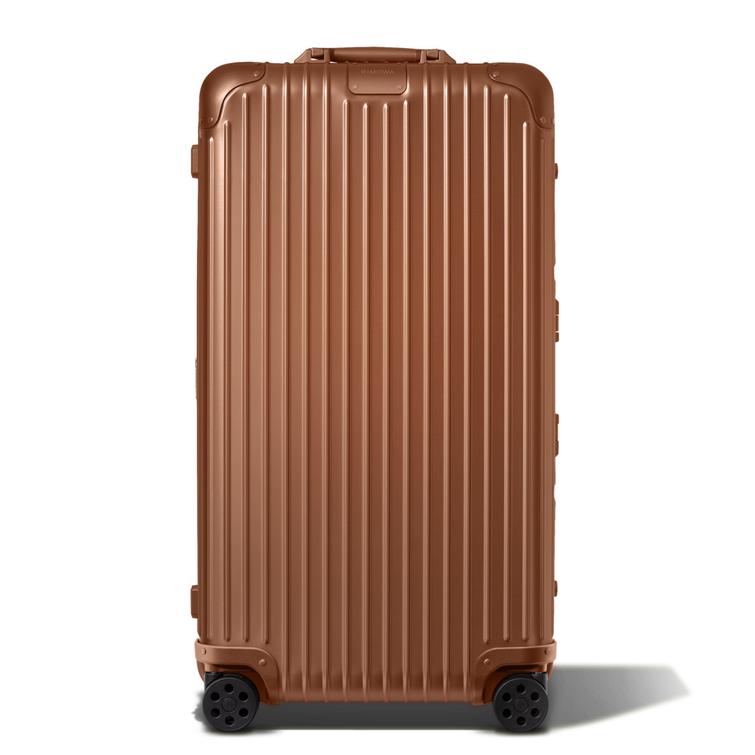 Crafted from high-end anodized aluminum, RIMOWA Original is an iconic luggage design, instantly recognizable with its sleek lines and signature grooves. Within a vast range of sizes, find your trusted and durable companion for your business and leisure travels. Ideal for 2 weeks or more of travel, the RIMOWA Original Trunk Plus in Bronze brown features several ingenious functionalities: - Stage-free telescopic handle - RIMOWA Multiwheel® System - TSA-approved locks - Flex Divider Includes a complimentary leather luggage tag and a sticker. Designed in Germany. Produced in our RIMOWA factories. Key elements TSA-Approved Locks Each of our suitcases features TSA-approved locks that can be opened by security during airline baggage checks without causing any damage. Flex Divider Packed items are kept in perfect order during transit with the height adjustable Flex Divider, which can be adapted to suit your belongings. RIMOWA Multiwheel® System Pioneered by RIMOWA, this high-end system guarantees stable and effortless steering thanks to ball-bearing mounted wheels with cushioned axels. Telescopic Handle Engineered to offer seamless stage-free adjustment for maximum comfort and smooth maneuverability. Size and Weight Measurement 31.5 x 17.3 x 14.4 inch Weight 14.1 lbs Volume 26.5 gal Materials Outside: Aluminum Inside: Polyester Handles: Plastic Wheels: Hard plastic Dividers: Polyester