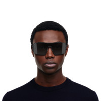 RIMOWA × MYKITA join forces to introduce a new generation of eyewear that blends innovation with minimalist aesthetics. The Visor series offers an ultra-light stainless-steel frame paired with a contoured lens shield for full wraparound protection. The shield is seamlessly attached to the frame with a Mylon® clip, blending functionality with style. This detail reflects the technical innovation shared by both RIMOWA and MYKITA, elevating both form and function. The MR004 Navigator Sunshield features a black frame with a Mylon® clip and a black Toric lens shield for a sharp monochrome look. Ultra-light and resilient, these unisex sunglasses offer: - Highly adjustable construction for optimal fit - MYKITA patented spiral hinge - Anti-slip silicone nose pads and temple tips - Contoured lens shield protecting from peripheral glare and reflections - Anti-glare and 100% UV protection Co-designed by RIMOWA × MYKITA and meticulously handcrafted at MYKITA HAUS in Berlin, each pair comes in a co-branded eyewear case with an authenticity certificate, underscoring the commitment to German engineering and lasting quality. Key elements Handcrafted Excellence Each frame is expertly handcrafted from sustainable stainless steel at MYKITA HAUS in Berlin, undergoing over 80 precise manual steps. Patented Spiral Hinge The co-branded collection features MYKITA's patented spiral hinge for a lightweight, durable, and seamlessly designed frame. Premium Lens Shield The toric lens shield features horizontal and vertical base curves for a contoured fit, reducing peripheral glare and reflections. It blocks harmful UV rays with 100% UVA/UVB protection, while Category 3 lenses ensure balanced light transmission in bright conditions. Eyewear Case The co-branded eyewear case is embossed with the coordinates of the RIMOWA factory in Cologne and MYKITA HAUS in Berlin. It includes a matching cleaning cloth. Size and Weight Measurement 2.2 x 6.6 x 5.4 inch Weight 0.7 oz Materials Frame : Stainless Steel Shield clip : Mylon® Nose Pad : Silicone Temple Tip : Silicone Lens Shield : Polyamide
