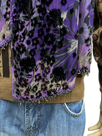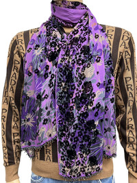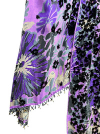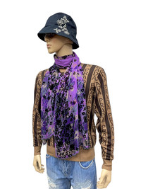 Material: 100% Silk base with Rayon velvet floral burnout & beaded fringe * Colorway: Rich purples, blacks, and neutrals in a bold floral pattern + Details: • Semi-sheer devoré technique • Intricate beaded trim • Label: Aurora Co. Ltd Japan (official Anna Sui license) A stunning collectible accessory-boho glam meets high fashion. Rare find from Anna Sui's Japanese line. ✈️WORLDWIDE EXPRESS SHIPPING ✈️ DHL / FedEx (ETA) 5~8 Days Worldwide (From Asia) ありがとうございました(Thank You) ~ rOAdRunNeR cOlleCtioN ~