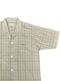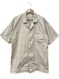 Vintage Burberrys nova check pajama shirt from the golden era before the rebrand. This is not your basic Burberry piece - this comes from the Japan licensed line, known for its higher quality fabrics and exclusive cuts not seen in Western releases. Features the iconic full nova check pattern in a clean beige tone, paired with a boxy open-collar silhouette that hits perfectly for modern streetwear fits. Embroidered Burberrys chest logo + engraved buttons — subtle but powerful flex. Lightweight 100% cotton construction makes it perfect for layering or wearing solo as a statement summer piece. This is that lowkey luxury archive energy — not loud branding, but instantly recognizable to those who know. Fit: Fits like a boxy M-L (Refer to measurements provided) CONDITION Good vintage condition Minor signs of wear consistent with age No major flaws Shipping & Returns: • Ships worldwide via FedEx/DHL Express (ETA 5-8 business days from Asia) • Buyer responsible for customs/ import fees (if any) • No returns - review all photos & description carefully ありがとうございました(Thank You) ~ rOAdRunNeR cOlleCtioN ~