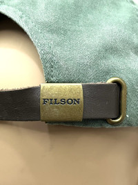 C.C. Filson classic cap featuring: • Olive green washed cotton body • Detailed bear embroidery front • Genuine leather strapback with brass buckle • Made in USA (Seattle, WA) • One size fits most • Condition: 8.5/10 - gentle wear, no flaws Authentic vintage outdoorswear piece. Timeless rugged style. ✈️WORLDWIDE EXPRESS SHIPPING ✈️ DHL / FedEx (ETA) 5~8 Days Worldwide (From Asia) ありがとうございました(Thank You) ~ rOAdRunNeR cOlleCtioN ~