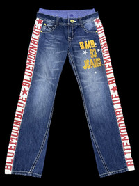 🌜VERY RARE & DOPE Vintage BLUEMOONBLUE Side SpellOut Butt Embroidery Hysteric Glamour Inspired Hybrid Double Waist (Denim & Elastic) Pants ➤ BRAND NAME : BLUE MOON BLUE CONDITION : (USED : 8/10) MATERIAL : Denim ......…................................................................ ➤ SIZE MANUAL MEASUREMENT / LAID FLAT (INCHES) WAIST : 15“(W30") LENGTH ; *Outseam : 40"/41.5”(From Upper Waist) *Inseam : 31" .......….............................................................. ➤✈️WORLDWIDE EXPRESS SHIPPING ✈️ DHL / FedEx (ETA) 5~8 Days Worldwide (From Asia) ありがとうございました(Thank You) ~ rOAdRunNeR cOlleCtioN ~
