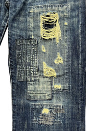 RARE! GLOBAL WORK Distressed Ripped Patchwork Kurt Cobain Kapital Style Denim Pants ➤ BRAND NAME : GLOBAL WORK CONDITION : (USED : 8/10) MATERIAL : Cotton Denim ......…................................................................ ➤ SIZE MANUAL MEASUREMENT / LAID FLAT (INCHES) WAIST : 15.5"( W31") (SIZE ON TAG : M ) LENGTH ; *Outseam : 41.5" *Inseam : 31" .......….............................................................. ➤✈️EXPRESS SHIPPING ✈️ The Items Will Be Shipped From Asia (Malaysia) Using FedEx EXPRESS / ETA (5~8 Days) Worldwide ありがとうございました(Thank You) ~ rOAdRunNeR cOlleCtioN ~