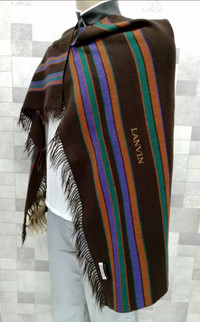 LANVIN Vintage Luxury Wool Oversized Shawl Body Wrap Brand : LANVIN Vintage Japan's Market Edition (8/10) Good Condition Material : Wool Colour : Brown with Multicolor Stripes ➤✈️WORLDWIDE EXPRESS SHIPPING ✈️ The Items Will Be Shipped From Asia Via FedEx (ETA) 5~8 Days Worldwide ありがとうございました(Thank You) ~ rOAdRunNeR cOlleCtioN ~