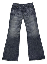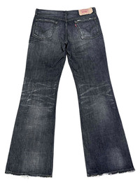 Authentic Levi's Vintage Clothing 517 Flare Jeans, made in Japan and crafted from premium denim. Features a sleek blast black wash with unique clawmark distressing and flared leg silhouette. A standout archival piece with bold character and unmistakable Japanese craftsmanship. Perfect for vintage Levi's collectors or fans of Japanese denim with a grunge or biker edge. ➤ BRAND NAME : LEVI’S 517 CONDITION : (USED : 8/10) No major flaws, light fading/ distressing is part of the design. MATERIAL : Denim ......…................................................................ ➤ SIZE MANUAL MEASUREMENT / LAID FLAT (INCHES) WAIST : 16“(W32") LENGTH ; *Outseam : 44" *Inseam : 33" .......….............................................................. ➤✈️WORLDWIDE EXPRESS SHIPPING ✈️ DHL / FedEx (ETA) 5~8 Days Worldwide (From Asia) ありがとうございました(Thank You) ~ rOAdRunNeR cOlleCtioN ~