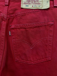 RARE! Hot Red 90’s LEVI’S 501 Made in USA ➤ BRAND NAME : LEVI’S 501 MADE in USA for Levi’s Japan's Market CONDITION : (USED : 8/10) MATERIAL : Cotton Denim ......…................................................................ ➤ SIZE MANUAL MEASUREMENT / LAID FLAT (INCHES) WAIST : 14"(W28") (SIZE ON TAG : 29) LENGTH ; *Outseam : 38.5" *Inseam : 28.5" .......….............................................................. ➤✈️EXPRESS SHIPPING ✈️ The Items Will Be Shipped From Asia (Malaysia) Using DHL EXPRESS / ETA (5~8 Days) Worldwide ありがとうございました(Thank You) ~ rOAdRunNeR cOlleCtioN ~