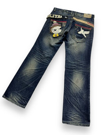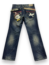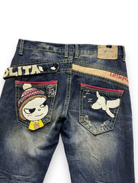 🔥VERY RARE🔥Vintage YOSHITOMO NARA LOLITA Exotic Vintage Denim Distressed Jeans ➤ BRAND NAME : YOSHITOMO NARA LOLITA MADE in Korea CONDITION : (USED : 8/10) MATERIAL : Cotton Denim ......…................................................................ ➤ SIZE MANUAL MEASUREMENT / LAID FLAT (INCHES) WAIST : 16"( W32") (SIZE ON TAG : L ) LENGTH ; *Outseam : 41" *Inseam : 31.5" .......….............................................................. ➤✈️WORLDWIDE EXPRESS SHIPPING ✈️ DHL / FedEx (ETA) 5~8 Days Worldwide (From Asia) ありがとうございました(Thank You) ~ rOAdRunNeR cOlleCtioN ~