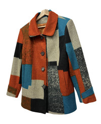 đĽCOKETT Faux Wool Color Block Patchwork Style Womenâs Full Button Blazer ⤠BRAND NAME : COKETT COLLECTION MADE in China for Japanâs Market CONDITION : (USED : 8/10) MATERIAL : Polyester ......âŚ................................................................ ⤠SIZE SIZE On Tag : M~L(ASIA) RECOMMENDED S~M (US) MANUAL MEASUREMENT (INCHES) *WIDTH (Armpit-Armpit) : 20.5" *LENGTH (Shoulder to Bottom Hem) : 28" .......âŚ.............................................................. âď¸WORLDWIDE EXPRESS SHIPPINGâď¸ The Items Will Be Shipped From Asia Via DHL / FedEx (ETA) 5~8 Days Worldwide ăăăă¨ăăăăăžăă (Thank You) ~ rOAdRunNeR cOlleCtioN ~