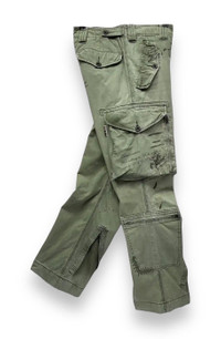 Hard-to-find 291295=HOMME cargo pants blending rugged military aesthetics with a rebellious rock 'n' work vibe. Featuring unique printed script graphics, layered patchwork, raw stitch accents, and asymmetrical pockets. A bold statement piece for fans of Kapital, Number (N)ine, and vintage utilitywear. ✈️WORLDWIDE EXPRESS SHIPPING ✈️ The Items Will Be Shipped From Asia Via DHL / FedEx (ETA) 5~8 Days Worldwide ありがとうございました(Thank You) ~ rOAdRunNeR cOlleCtioN ~