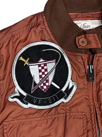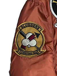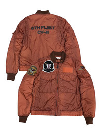 Vintage Avirex bomber jacket featuring detailed embroidery and patches from the 6th Fleet CV-41. Classic nylon MA-1 style with ribbed cuffs, collar, and hem. Iconic military-inspired design with VFA squadron patches and tactical appeal. Rugged construction with vintage fading-perfect for collectors or fans of military fashion. Timeless heritage piece from Avirex. ➤✈️WORLDWIDE EXPRESS SHIPPING ✈️ DHL / FedEx (ETA) 5~8 Days Worldwide (From Asia) ありがとうございました(Thank You) ~ rOAdRunNeR cOlleCtioN ~
