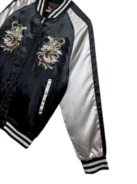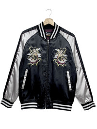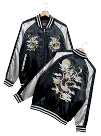 🔥JAPAN CRADLE GEISHA Sukajan Embroidery Souvenir Jacket ➤ BRAND NAME : DRESS OF JAPAN CRADLE CONDITION : (USED : 8/10) MATERIAL : Polyester ......…................................................................ ➤ SIZE SIZE On Tag : Medium (Asia) MANUAL MEASUREMENT (INCHES) *WIDTH (Armpit-Armpit) : 20.5" *LENGTH (Center Base of Collar to Bottom Hem) : 24" .......….............................................................. ✈️WORLDWIDE EXPRESS SHIPPING✈️ DHL / FedEx (ETA) 5~8 Days Worldwide ありがとうございました (Thank You) ~ rOAdRunNeR cOlleCtioN ~