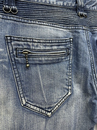 *Vintage 90's Japanese Brand BUFALLO BOBS Stone Wash Biker Jeans Inspired By Balmain ➤ BRAND NAME : BUFALLO BOBS MADE in China for Japan's Market (refer tag picture) CONDITION : (USED : 9/10) MATERIAL : Cotton/Denim, Polyurethane (Stretchy Denim) ......…................................................................ ➤ SIZE MANUAL MEASUREMENT / LAID FLAT (INCHES) WAIST : 16"( W32") (SIZE ON TAG : 2) *RECOMMENDED SIZE 31" (Due To Low-Rise Design) LENGTH ; *Outseam : 42.5" *Inseam : 34" RISE ; *Front Rise : 9" *Back Rise : 14" THIGH : 11.5" LEG OPENING : 7" (Double Zipper Leg) .......….............................................................. ➤✈️EXPRESS SHIPPING ✈️ The Items Will Be Shipped From Asia (Malaysia) Using DHL EXPRESS / ETA (5~8 Days) Worldwide ありがとうございました(Thank You) ~ rOAdRunNeR cOlleCtioN ~