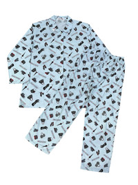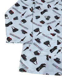 Ultra-RARE LIMITED EDITION for Japan’s Market HELLO KITTY pajama set from 2008 featuring an all-over monogram-style print of accessories and Hello Kitty logos. Classic 2 front pocket button up top with matching elastic waist bottoms in soft pastel blue cotton. Unisex cut, comfy and collectible-perfect for fans of Y2K Sanrio, vintage lounge fits, or standout sleepwear. Tagged Hello Kitty by Sanrio, Japan exclusive design. Lightly worn, great condition for its age. Measurements (flat lay): • Top: Chest: 22”, Length: 30”, Shoulder: 19”, Sleeve Length: 22” • Bottoms: Waist : 32”-34” (Stretched) Inseam: 26” Outseam: 39.5” .......….............................................................. ✈️WORLDWIDE EXPRESS SHIPPING✈️ DHL / FedEx (ETA) 5~8 Days Worldwide ありがとうございました (Thank You) ~ rOAdRunNeR cOlleCtioN ~