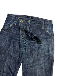 Super rare archive piece from CCP (Crazy Character Print)– founded by Tsutomu Kijima in Tokyo (1996). Originally rooted in silk screening, clubwear, and techno culture, CCP evolved into one of Japan’s most unique niche brands blending urban, functional, and cycling aesthetics with an avant-garde touch. This denim is a prime example of CCP’s early experimental design language — featuring a signature slanted zipper, architectural seams, wide leg silhouette, and utilitarian build. Minimal branding, but packed with quiet energy. A true collectible for fans of Japanese underground fashion. Details: • Brand: CCP (Crazy Character Print) • Origin: Made in Japan • Year: Likely late '90s–early 2000s • Material: 100% Cotton • Size: Fits W31” • Features: – Unique slanted front zipper – Wide straight leg cut – Paneled knee construction – Double rear pockets w/ angular stitchwork – Heavyweight, vintage-washed denim – Minimal branding / low-key utility Condition: Excellent vintage w/ natural fading and aging (adds character) Pairs well with tactical gear, vintage GORE-TEX outerwear, wide sneakers (New Balance 2002R / Salomon XT), or retro rave tops. Perfect for fans of Julius, Cav Empt, Issey Sport, early WTAPS, or anyone hunting deep Tokyo archive grails. Shipping & Returns: • Ships worldwide via FedEx Express (ETA 5-8 biz days from Asia) • Buyer responsible for any customs/import fees (if any) • No returns - please review all photos & measurements carefully ありがとうございまし(Thank You) ~ rOAdRunNeR cOlleCtioN ~