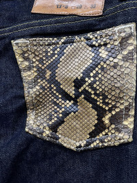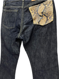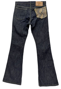 🔥RARE🔥TJ-3 Snake Skin Pocket Perfect Flare Denim Jeans ➤ BRAND NAME : TOKYO JEANS TJ-3 MADE in JAPAN CONDITION : (USED : 8/10) MATERIAL : Cotton Denim ......…................................................................ ➤ SIZE MANUAL MEASUREMENT / LAID FLAT (INCHES) RECOMMENDED WAIST 27” WAIST : 14"( W28") (SIZE ON TAG : 29) LENGTH ; *Outseam : 40" *Inseam : 30.5" .......….............................................................. ➤✈️WORLDWIDE EXPRESS SHIPPING ✈️ The Items Will Be Shipped From Asia Via DHL / FedEx (ETA) 5~8 Days Worldwide ありがとうございました(Thank You) ~ rOAdRunNeR cOlleCtioN ~
