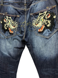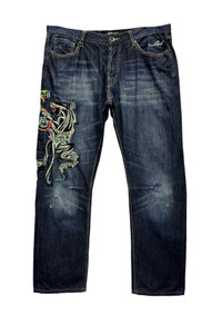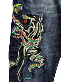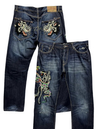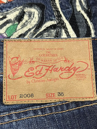 🔥SICK💥THE GODFATHER x ED HARDY Panther Vs Snake Embroidery Tattoo Wear Distressed Denim ➤ BRAND NAME : THE GODFATHER x ED HARDY BY CHRISTIAN AUDIGER CONDITION : (USED : 8/10) MATERIAL : Denim ......…................................................................ ➤ SIZE MANUAL MEASUREMENT / LAID FLAT (INCHES) WAIST : 16“(W32") (SIZE ON TAG : 36”x 32”) LENGTH ; *Outseam : 42" *Inseam : 32" .......….............................................................. ➤✈️WORLDWIDE EXPRESS SHIPPING ✈️ DHL / FedEx (ETA) 5~8 Days Worldwide (From Asia) ありがとうございました(Thank You) ~ rOAdRunNeR cOlleCtioN ~