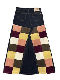 🔥VERY RARE🔥Unique A-line denim midi skirt featuring vibrant multicolor corduroy patchwork panels along both legs, creating a bold double-knee design. Eye-catching retro aesthetic with classic 5-pocket construction and zip fly. Perfect statement piece for fans of Double Knee, Pathwork, Kapital, RRL, Vivienne Westwood, Hysteric Glamour, Issey Miyake, Yohji Yamamoto or vintage Y2K ➤✈️WORLDWIDE EXPRESS SHIPPING ✈️ DHL / FedEx (ETA) 5~8 Days Worldwide (From Asia) ありがとうございました(Thank You) ~ rOAdRunNeR cOlleCtioN ~