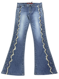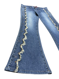 UNIFEEL Gemstones Studded Kapital Design Frayed Stretch Denim Flare Jeans ➤ BRAND NAME : UNIFEEL CONDITION : (USED : 8/10) MATERIAL : Stretch Denim ......…................................................................ ➤ SIZE MANUAL MEASUREMENT / LAID FLAT (INCHES) WAIST : 14“(W28") LENGTH ; *Outseam : 40.5" *Inseam : 31" .......….............................................................. ➤✈️WORLDWIDE EXPRESS SHIPPING ✈️ DHL / FedEx (ETA) 5~8 Days Worldwide (From Asia) ありがとうございました(Thank You) ~ rOAdRunNeR cOlleCtioN ~