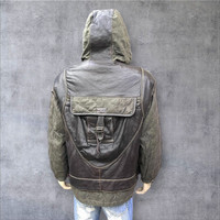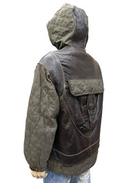 💥Vintage VIA NUOVA Japan Hybrid Techwear Jacket Extremely rare and beautifully constructed piece mixing cowhide leather with quilted polyester. Distinctive layered design with utilitarian detailing and deep Freewheelers x Undercover x Y's vibes. • Genuine cowhide leather front/body • Quilted poly sleeves and back panel • Massive rear kangaroo pocket w/ flap • Hybrid leather hood, cinch cords, and wrist tabs • Earthy tone paneling — tactical & wearable • Inner lined w/ acetate-rayon blend • Tag size M: (check measurements) — fits like M/L Vibe: Tokyo Underground | Archive Techwear | Avant Workwear | Industrial Grunge | Junya x Gorpcore Condition: • Great used condition – minor aging adds character • No major flaws or damage • Clean and ready to wear This is a grail-level piece for fans of hybrid construction, functional silhouettes, and rugged Japanese craftsmanship. Rare to find — don’t sleep. Shipping & Returns: • Ships worldwide via FedEx Express (ETA 5-8 business days from Asia) • Buyer responsible for customs/ import fees (if any) • No returns - please review all photos & description carefully ありがとうございました (Thank You) ~ rOAdRunNeR cOlleCtioN ~