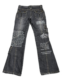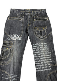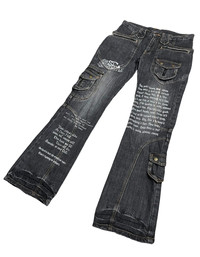 🔥EVOLUTION Retro Punk Poems Multipocket Flare Denim Heavy Jeans ➤ BRAND NAME : EVOLUTION CONDITION : (USED : 8/10) MATERIAL : Cotton Denim ......…................................................................ ➤ SIZE MANUAL MEASUREMENT / LAID FLAT (INCHES) WAIST : 15.5"( W31") (SIZE ON TAG : 33) LENGTH ; *Outseam : 43" *Inseam : 33.5" .......….............................................................. ➤✈️WORLDWIDE EXPRESS SHIPPING ✈️ The Items Will Be Shipped From Asia Via DHL / FedEx (ETA) 5~8 Days Worldwide ありがとうございました(Thank You) ~ rOAdRunNeR cOlleCtioN ~