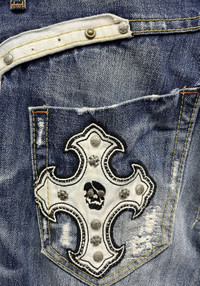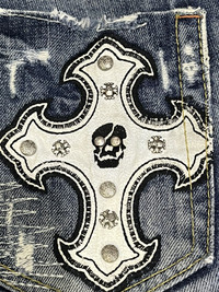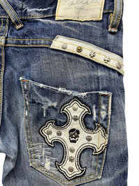 🔥LOLITA Exotic Denim Jeans Chrome Hearts Inspired Yoshitomo Nara Cross Skull Inspireds Studded Damage Denim LOWRISE Cut Jeans ➤ BRAND NAME : LOLITA MADE in Korea for JAPAN’S Market CONDITION : (USED : 8/10) MATERIAL : Denim ......…................................................................ ➤ SIZE MANUAL MEASUREMENT / LAID FLAT (INCHES) WAIST : 14.5“(W29") (SIZE ON TAG : XS) LENGTH ; *Outseam : 38.5" *Inseam : 31" .......….............................................................. ➤✈️WORLDWIDE EXPRESS SHIPPING ✈️ DHL / FedEx (ETA) 5~8 Days Worldwide (From Asia) ありがとうございました(Thank You) ~ rOAdRunNeR cOlleCtioN ~