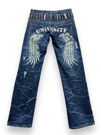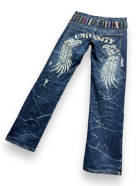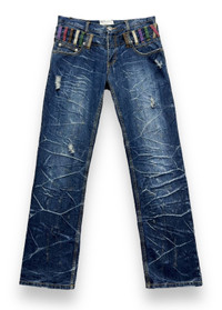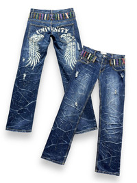 🔥NYLAUS Punk Double Waist Brilliant Blue Silver Splash Denim ➤ BRAND NAME : NYLAUS CONDITION : (USED : 8/10) MATERIAL : Denim ......…................................................................ ➤ SIZE MANUAL MEASUREMENT / LAID FLAT (INCHES) WAIST : 15.5“(W31") LENGTH ; *Outseam : 43" *Inseam : 32" .......….............................................................. ➤✈️WORLDWIDE EXPRESS SHIPPING ✈️ DHL / FedEx (ETA) 5~8 Days Worldwide (From Asia) ありがとうございました(Thank You) ~ rOAdRunNeR cOlleCtioN ~