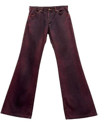 🔥VERY RARE🔥Vintage WRANGLER Smoke Maroon Flare Denim ➤ BRAND NAME : WRANGLER CONDITION : (USED : 8/10) MATERIAL : Denim ......…................................................................ ➤ SIZE MANUAL MEASUREMENT / LAID FLAT (INCHES) WAIST : 15“(W30") LENGTH ; *Outseam : 41.5" *Inseam : 31.5" .......….............................................................. ➤✈️WORLDWIDE EXPRESS SHIPPING ✈️ DHL / FedEx (ETA) 5~8 Days Worldwide (From Asia) ありがとうございました(Thank You) ~ rOAdRunNeR cOlleCtioN ~