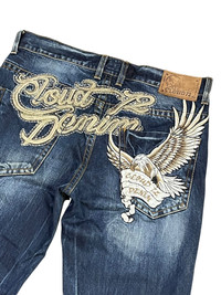 💀Vintage CLOUD DENIM Big Bold Embroidery Skull Jeans 💥 ➤ BRAND NAME : CLOUD JEANS CONDITION : (USED : 8/10) MATERIAL : Denim ......…................................................................ ➤ SIZE MANUAL MEASUREMENT / LAID FLAT (INCHES) WAIST : 16“(W32") LENGTH ; *Outseam : 43" *Inseam : 32.5" .......….............................................................. ➤✈️WORLDWIDE EXPRESS SHIPPING ✈️ DHL / FedEx (ETA) 5~8 Days Worldwide (From Asia) ありがとうございました(Thank You) ~ rOAdRunNeR cOlleCtioN ~