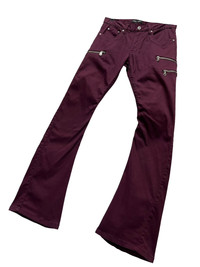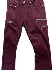 BIKE+STAR Grunge Punk MultiZipper Stretch Skinny Flare Pants 🔥STRICTLY FOR SKINNY GUY🔥 ➤ BRAND NAME : BIKE+STAR CONDITION : (USED : 8/10) MATERIAL : Cotton, Polyurethane COLOUR : Maroon ......…................................................................ ➤ SIZE MANUAL MEASUREMENT / LAID FLAT (INCHES) WAIST : 15“(W30") (SIZE ON TAG : M/80cm) RECOMMENDED WAIST 29”~30” LENGTH ; *Outseam : 43" *Inseam : 33" .......….............................................................. ➤✈️WORLDWIDE EXPRESS SHIPPING ✈️ DHL / FedEx (ETA) 5~8 Days Worldwide (From Asia) ありがとうございました(Thank You) ~ rOAdRunNeR cOlleCtioN ~