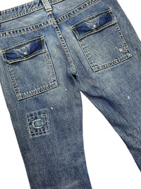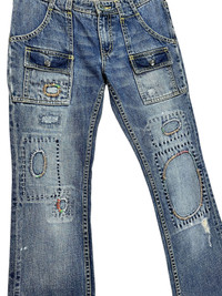 FYE🔥Vtg BACK NUMBER Art Patchwork Sashiko Style LOW RISE Denim Bush Pants Flared ➤ BRAND NAME : BACK NUMBER CONDITION : (USED : 8/10) MATERIAL : Denim ......…................................................................ ➤ SIZE MANUAL MEASUREMENT / LAID FLAT (INCHES) WAIST : 14“(W28") (SIZE ON TAG : 29) LENGTH ; *Outseam : 37" *Inseam : 29" .......….............................................................. ➤✈️WORLDWIDE EXPRESS SHIPPING ✈️ DHL / FedEx (ETA) 5~8 Days Worldwide (From Asia) ありがとうございました(Thank You) ~ rOAdRunNeR cOlleCtioN ~