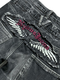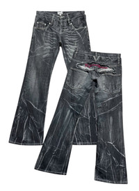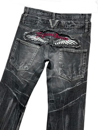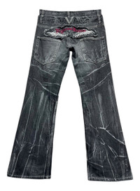 FYE🔥Vintage NYLAUS FLARE Punk Double Waist Clawmark whisker Daicock Wings Embroidery Spellout Denim🔥 ➤ BRAND NAME : NYLAUS CONDITION : (USED : 8/10) MATERIAL : Denim ......…................................................................ ➤ SIZE MANUAL MEASUREMENT / LAID FLAT (INCHES) WAIST : 16“(W32") (SIZE ON TAG : 85cm) LENGTH ; *Outseam : 42.5" *Inseam : 31" .......….............................................................. ➤✈️WORLDWIDE EXPRESS SHIPPING ✈️ DHL / FedEx (ETA) 5~8 Days Worldwide (From Asia) ありがとうございました(Thank You) ~ rOAdRunNeR cOlleCtioN ~