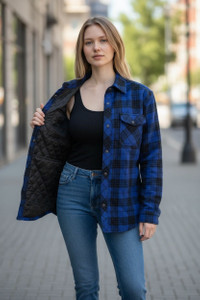 Japanese Brand - 💥RARE Y2K Blue Tartan Light Padded Quilted Fleece Shirt