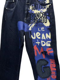 MARITHE FRANCOIS GIRBAUD Baggy Hip Hop Relaxed Loose Jeans Color Paint Art Abstract Big Patch G Brand : MARITHE FRANCOIS GIRBAUD Made in China for Japan's Market (8/10) Good Condition Material : Denim Size on Tag : 36 Actual Size Manual Measurement Were Taken Lying Flat (Approximately): Waist : 17”/ W34" Length ; *Outseam : 46" *Inseam : 33.5" Rise ; *Front Rise : 14" *Back Rise : 18" Thigh : 14" (3" Down Inseam) Leg Opening : 10" (All measurement in Inches) ✈️EXPRESS SHIPPING The Items Will Be Shipped From Asia Using DHL EXPRESS / ETA (5~8 Days) Worldwide ありがとうございました (Thank You) ~ rOAdRunNeR cOlleCtioN ~