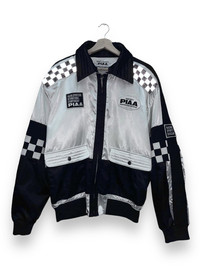 Vintage 1990s PIAA Racing Sports Nylon Jacket. Unused condition, but with a little yellowish colour from longer storage. The original pricing in the 1990s was 58000 JPY, which equaled 391 USD. This design was extremely rare and limited edition in the 1990s with reflecting circuit checkered flag. ➤ BRAND NAME : PIAA PRODUCED BY L’UOMO TERZO DESIGN MADE in JAPAN CONDITION : (NEW OLD STOCK : 8/10) MATERIAL : Nylon ......…................................................................ ➤ SIZE SIZE On Tag : F (RECOMMENDED L US) MANUAL MEASUREMENT (INCHES) *WIDTH (Armpit-Armpit) : 26" *LENGTH (Shoulder to Bottom Hem) : 27.5" .......….............................................................. ✈️WORLDWIDE EXPRESS SHIPPING✈️ DHL / FedEx (ETA) 5~8 Days Worldwide ありがとうございました (Thank You) ~ rOAdRunNeR cOlleCtioN ~