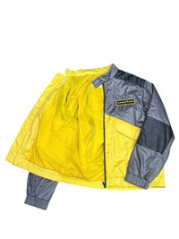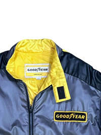 Insanely rare vintage Goodyear racing-style nylon bomber jacket. Japan exclusive release - not your average workwear. Features bold panel blocking in yellow, grey, and black with embroidered Goodyear logo patches on front chest. Light padded inner for comfort and structure. Functional and collectible: • 2 oversized front flap pockets • 2 hidden side hand pockets • Snap collar + full front zip • Fully lined Perfect for motorsport fans, archival collectors, or styled with baggy denim and vintage boots for a proper early 2000s garage-core / workwear revival look. Tag Size: L (Japan) Recommended Fit: M US (Please refer to measurements for best fit) Measurements (taken flat): • Pit to pit: XX cm • Length: xx cm • Shoulder to cuff: xx cm • Shoulder to shoulder: xx cm (Use your photo as size ref) Condition: • Great vintage condition • Minor general wear, no major flaws • See all photos Shipping & Returns: • Ships from Asia via FedEx Express (ETA 5-8 business days) • Buyer responsible for customs/ import fees (if any) • No returns - please review photos & measurements ありがとうございました (Thank You) ~ rOAdRunNeR cOlleCtioN ~