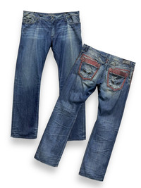 🔥FYE SIZE40” ROBIN’S JEANS Sparkling Gemstone Double Back Pocket Distressed Easy Fit Denim ➤ BRAND NAME : ROBIN’S JEANS CONDITION : (USED : 8/10) MATERIAL : Cotton Denim, Faux Gemstone ......…................................................................ ➤ SIZE MANUAL MEASUREMENT / LAID FLAT (INCHES) WAIST : 20“(W40") LENGTH ; *Outseam : 46" *Inseam : 35.5" .......….............................................................. ➤✈️WORLDWIDE EXPRESS SHIPPING ✈️ DHL / FedEx (ETA) 5~8 Days Worldwide (From Asia) ありがとうございました(Thank You) ~ rOAdRunNeR cOlleCtioN ~