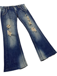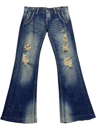 🔥FYE🔥Vintage VANQUISH Designer Punk Studded Ripped Distressed Flare Jeans ➤ BRAND NAME : VANQUISH CONDITION : (USED : 8/10) MATERIAL : Denim ......…................................................................ ➤ SIZE MANUAL MEASUREMENT / LAID FLAT (INCHES) WAIST : 15“(W30") LENGTH ; *Outseam : 39" *Inseam : 30" .......….............................................................. ➤✈️WORLDWIDE EXPRESS SHIPPING ✈️ DHL / FedEx (ETA) 5~8 Days Worldwide (From Asia) ありがとうございました(Thank You) ~ rOAdRunNeR cOlleCtioN ~