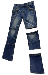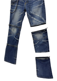🔥SEMANTIC 3-Way Length Zipped Punk Whisker Minimalist Flared Denim *CHAIN NOT INCLUDED* ➤ BRAND NAME : SEMANTIC DESIGN CONDITION : (USED : 8/10) MATERIAL : Cotton Denim ......…................................................................ ➤ SIZE MANUAL MEASUREMENT / LAID FLAT (INCHES) WAIST : 15.5"( W31") (SIZE ON TAG : L ) LENGTH ; *Outseam : 43" *Inseam : 33" .......….............................................................. ➤✈️WORLDWIDE EXPRESS SHIPPING ✈️ The Items Will Be Shipped From Asia Via DHL / FedEx (ETA) 5~8 Days Worldwide ありがとうございました(Thank You) ~ rOAdRunNeR cOlleCtioN ~